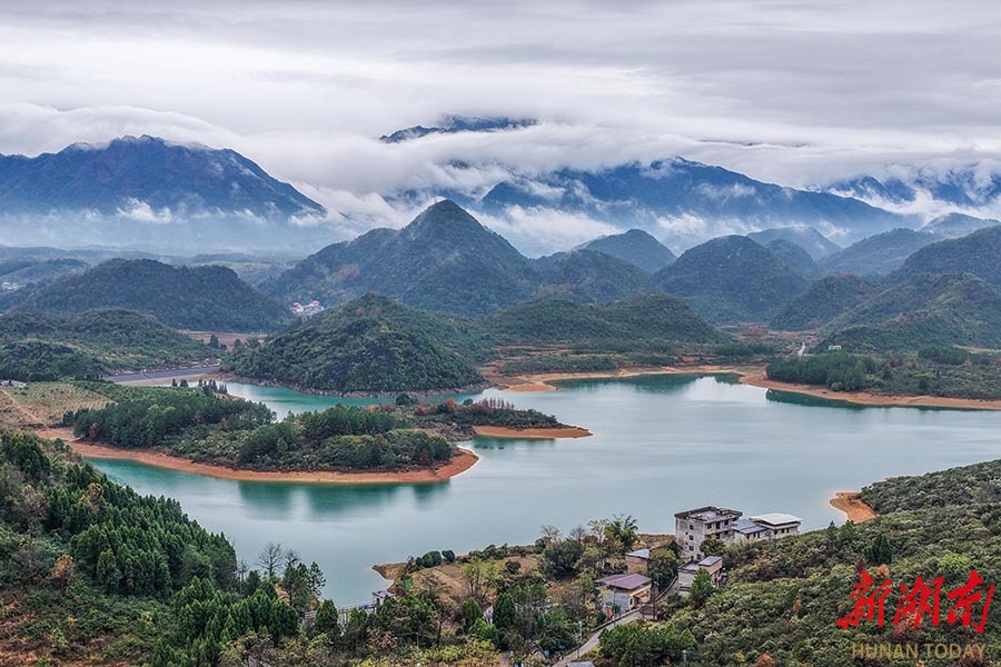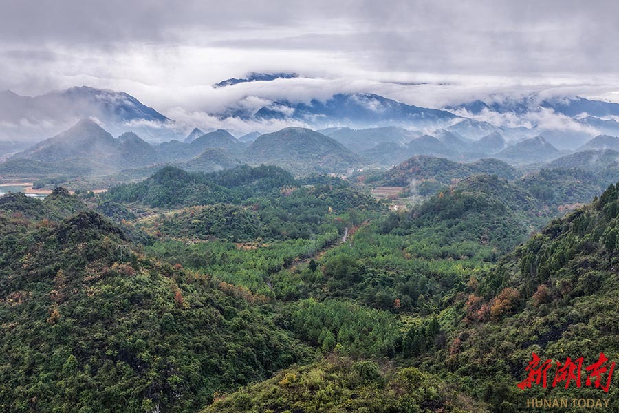 12月24日,道县寿雁镇,雨后的群山云雾与村落田园相映成趣,构成一幅灵动的水墨丹青,尽显自然之美。 蒋克青 摄(湖南图片库)