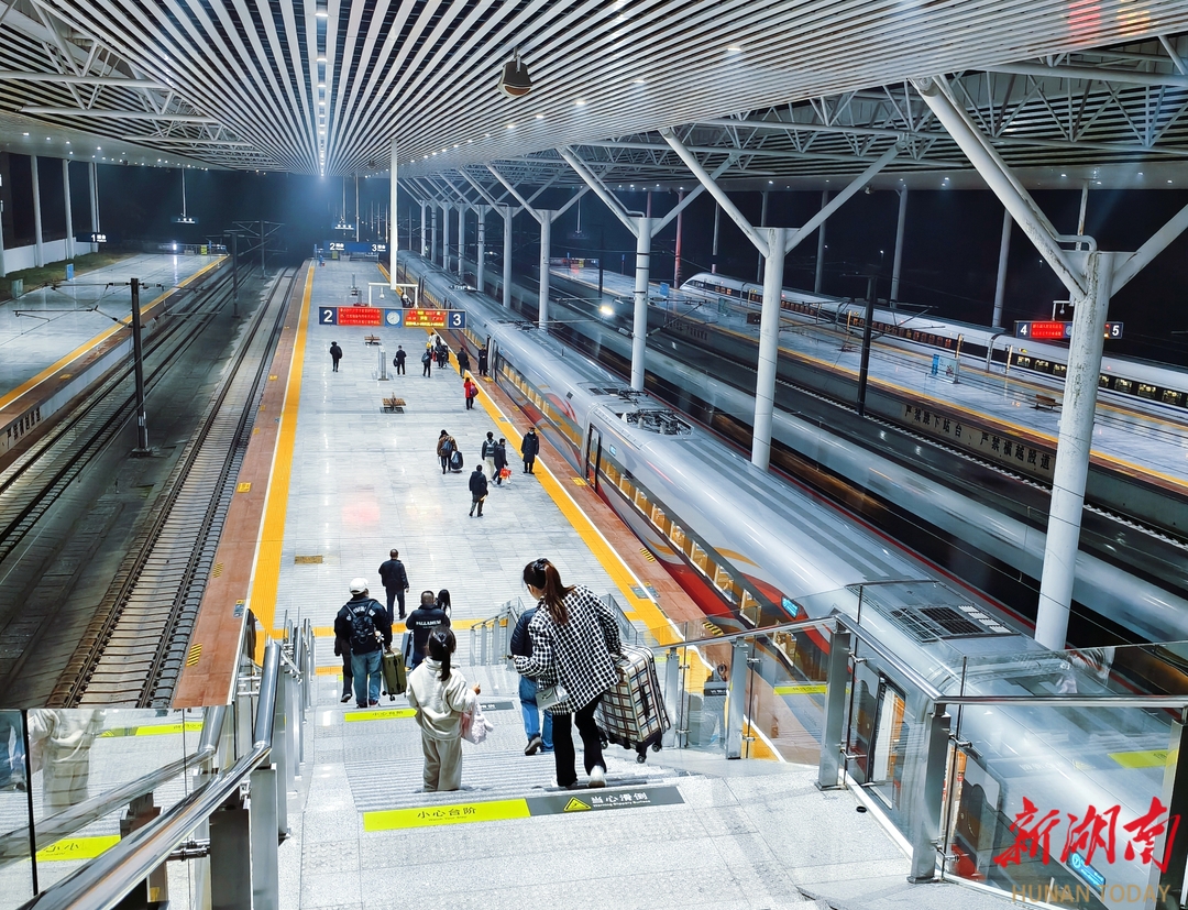 2026 年元旦3天假期,相较于2025年只放一天假的情况下客流增幅较大。今年元旦小长假的客流组成主要为探亲流、回乡到达客流、中转客流、旅游流。节前为省内客流较多、节后为直通客流较多,节前以邵阳、邵东、永州、醴陵等方向为主,节后以广州、深圳、虎门、上海、南京、杭州、北京等方向为主。运输期限内客流呈“N"型走势,客流波动幅度大、峰值高。