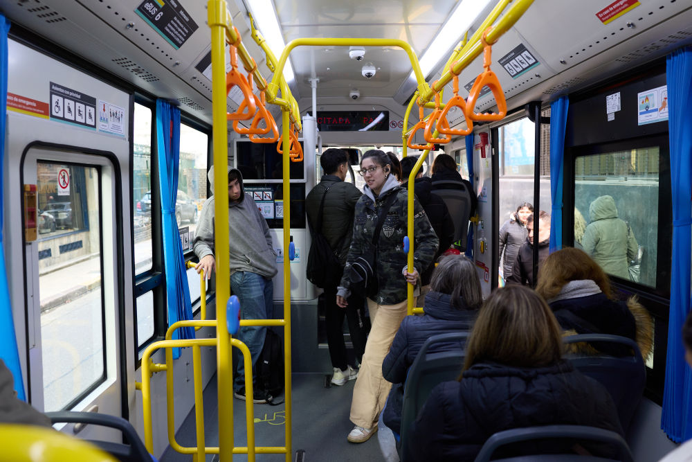 ↑2025年7月17日,乘客在阿根廷布宜诺斯艾利斯乘坐电动公交车。