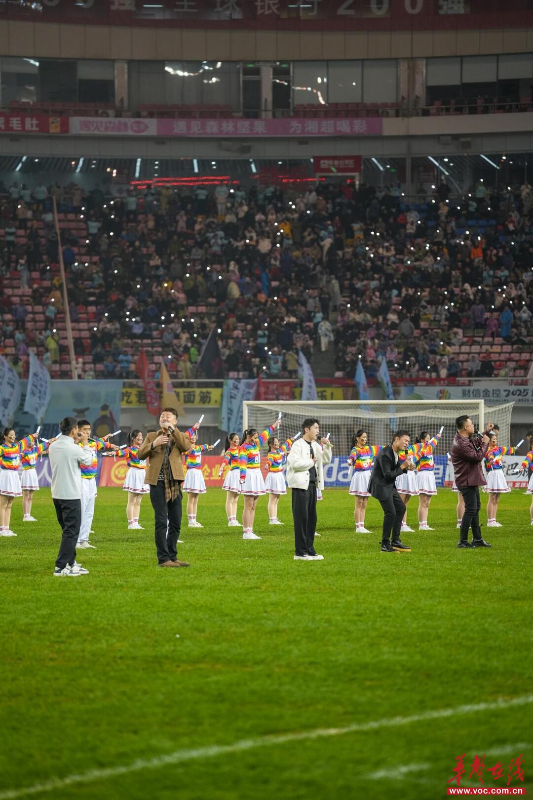 中场休息一连串洋溢着浓浓乡情的文艺表演接连登场,深深触动了现场回湘球迷们的心。观众们不约而同地扬起手机,点点星光汇聚成一片温暖的海洋,与舞台上的表演交相辉映。