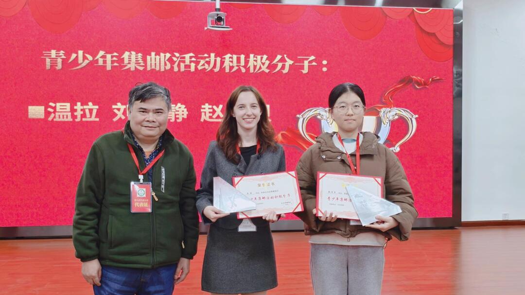 以麓枫少年邮局为辐射核心,校园集邮文化的影响力正不断延伸。在邮局的带动下,中南大学大学生集邮小组正式成立,本次大会上,中南大学团委赵贝贝、保加利亚留学生温拉等大学生集邮爱好者代表参会,中南大学法学院刘媛静等三名同学获评“青少年集邮活动积极分子”。温拉同学更是作为青少年代表登台发言,以《集邮是青春桥梁》为题分享了自己通过邮票感受中国文化、搭建中外交流纽带的经历,其讲述的集邮故事与文化感悟,赢得了在场会员的一致认可。