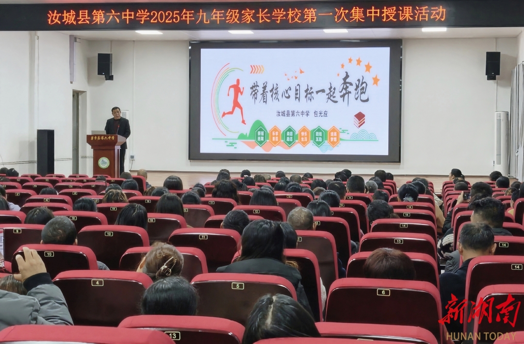 新湖南客户端12月25日讯(通讯员 陈为华 何韩军 袁婷锋 ) 12月23日,汝城县第六中学举办九年级家校分享会,该校物理名师工作室主持人、县级骨干教师包光应以《带着核心目标一起奔跑》为题,带来兼具深度与温度的专题分享,为九年级家长点亮成长引路灯和家校共育搭建清晰行动框架。