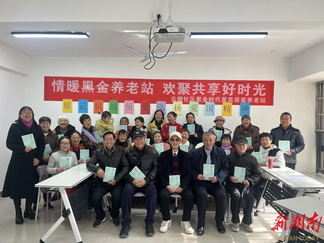 湖南日报·新湖南客户端12月25日讯(通讯员 肖洁 陈薇夷)“这样的读书会既有文化内涵,又能激发爱国情怀,还能和本土作家面对面交流,太有意义了!”前来参加读书分享会的张阿姨说。12月25日上午,长沙市天心区暮云街道云塘社区黑金时代养老服务站举行“铭记抗战历史 弘扬爱国精神”《锦绣河山》读书会暨新书分享会。辖区长者们齐聚一堂,与本小区本土作者王金星面对面交流。