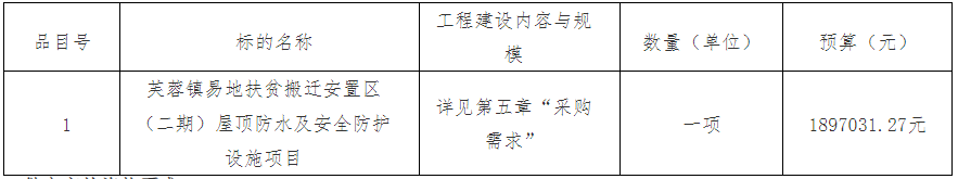 1、采购项目名称:芙蓉镇易地扶贫搬迁安置区(二期)屋顶防水及安全防护设施项目