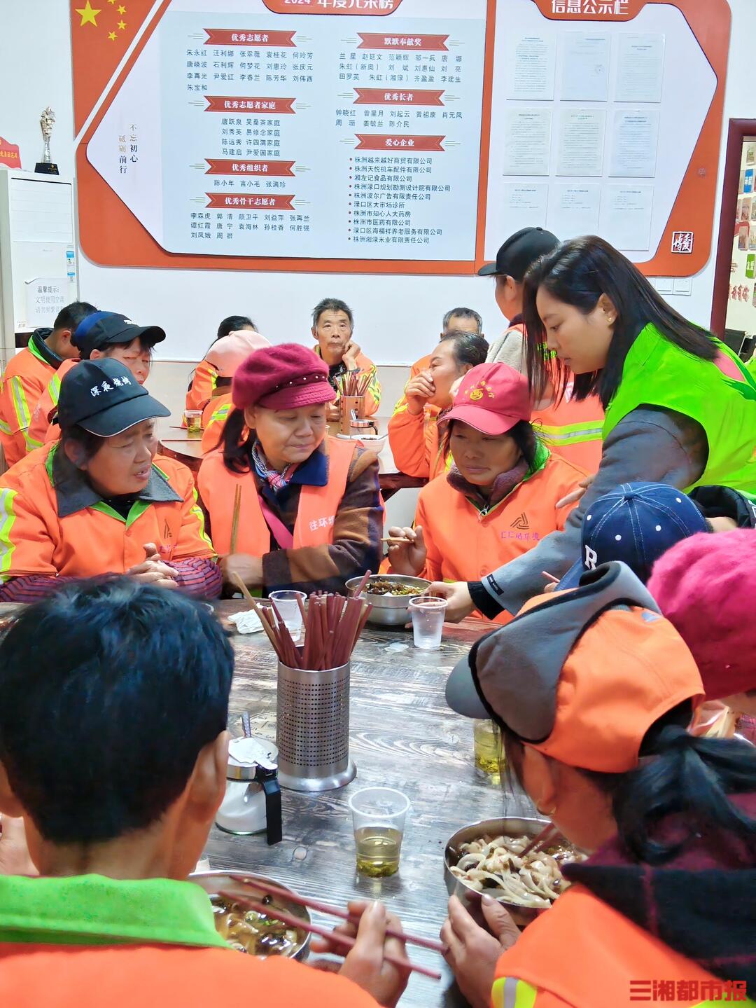 12月25日清晨,株洲市渌口区环卫工驿站内暖意融融,株洲市渌口区博爱志愿者联合会的志愿者们正忙着熬汤、煮粉、备料,为当值环卫工人烹制免费早餐。