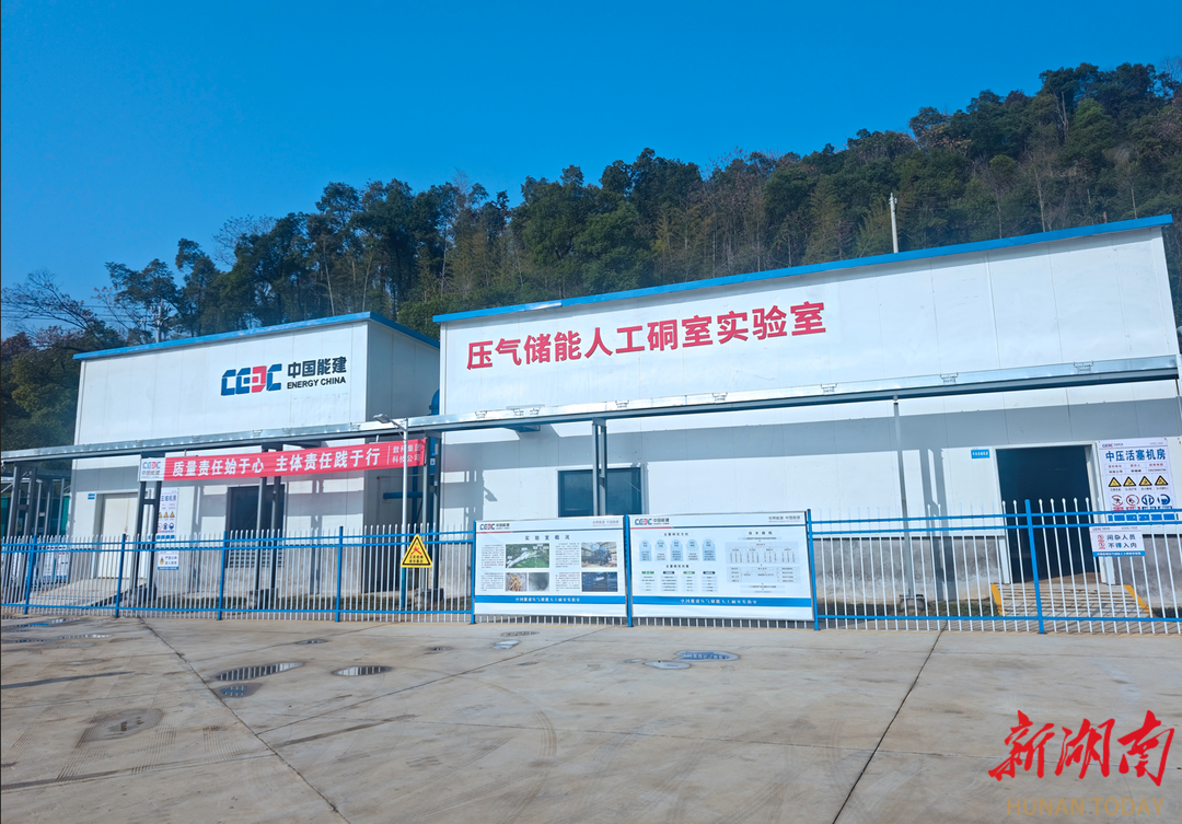 中国能建数科集团在望城区桥驿镇建设的压气储能人工硐室实验室是目前世界最大规模、最先进的人工硐室原位试验平台,拥有两座超大型试验洞,最大埋深110米,最高试验压力达20兆帕,规模与压力参数均居国际前列。该集团联合中铁设计、江苏世睿、长江设计集团等多家单位,在此开展联合攻关。