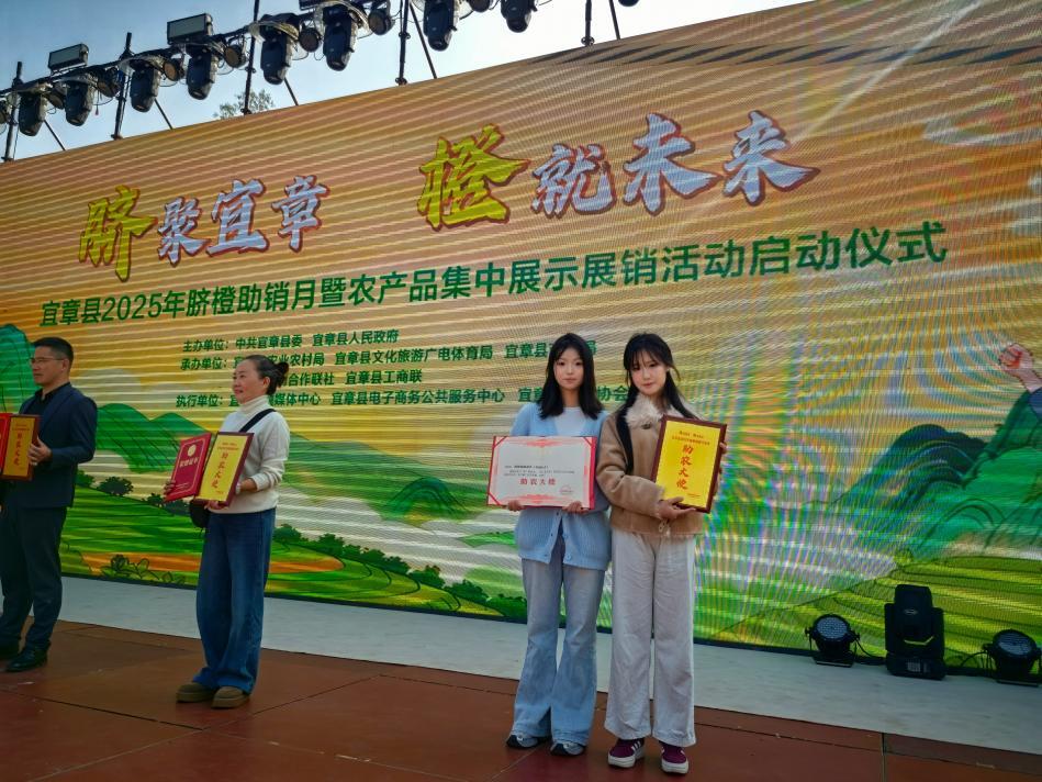 直播活动收官后,宜章县果农协会专程为钟璇及两位学生颁发“助农大使”荣誉证书,协会负责人表示:“高校师生的专业直播思路,让我们的脐橙既有品质又有流量,实实在在帮果农拓宽了销路。”本次大赛承办单位也现场向团队发出邀请:“希望后续能与贵校建立长期合作,借助师生团队专业能力,为更多宜章农特产品打造直播IP,推动区域产业升级。”