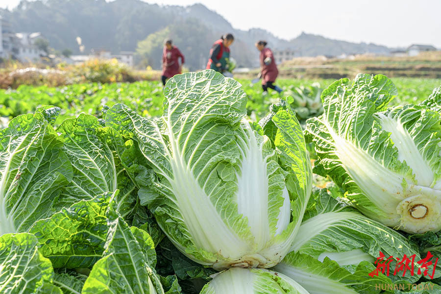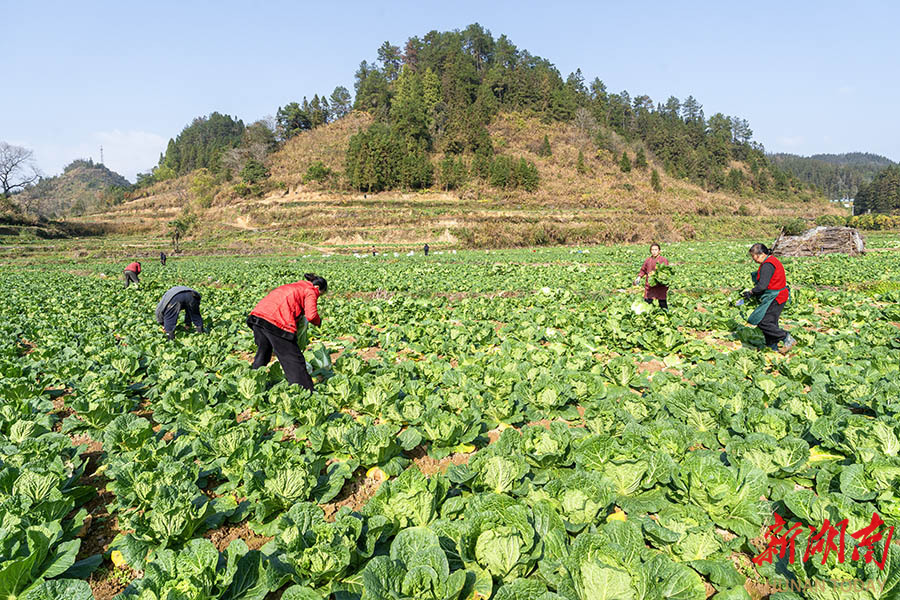 12月25日,吉首市双塘街道双塘村,村民在采收白菜。时下,当地村民抢抓晴好天气收获、包装、运输白菜,供应市场。梁永鸿 摄(湖南图片库)