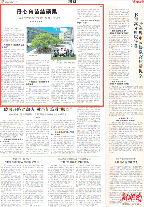 “十四五”规划收官的钟声渐近,回望来路,株洲市天元区围绕“办好人民满意的教育”这一目标,扎实推进教育高质量发展,加快建设教育强区。一幅“幼有善育、学有优教”的美好教育画卷正从容铺展。
