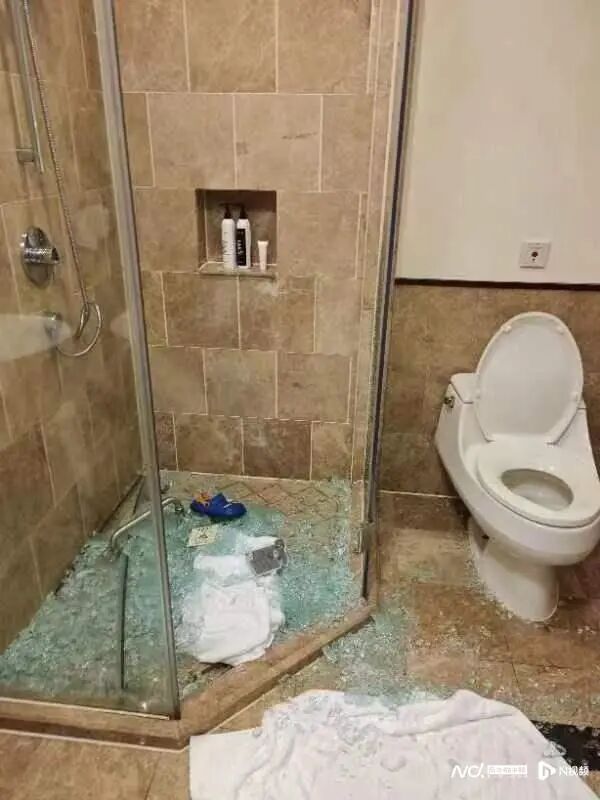 广东惠州一酒店浴室玻璃门突然爆裂