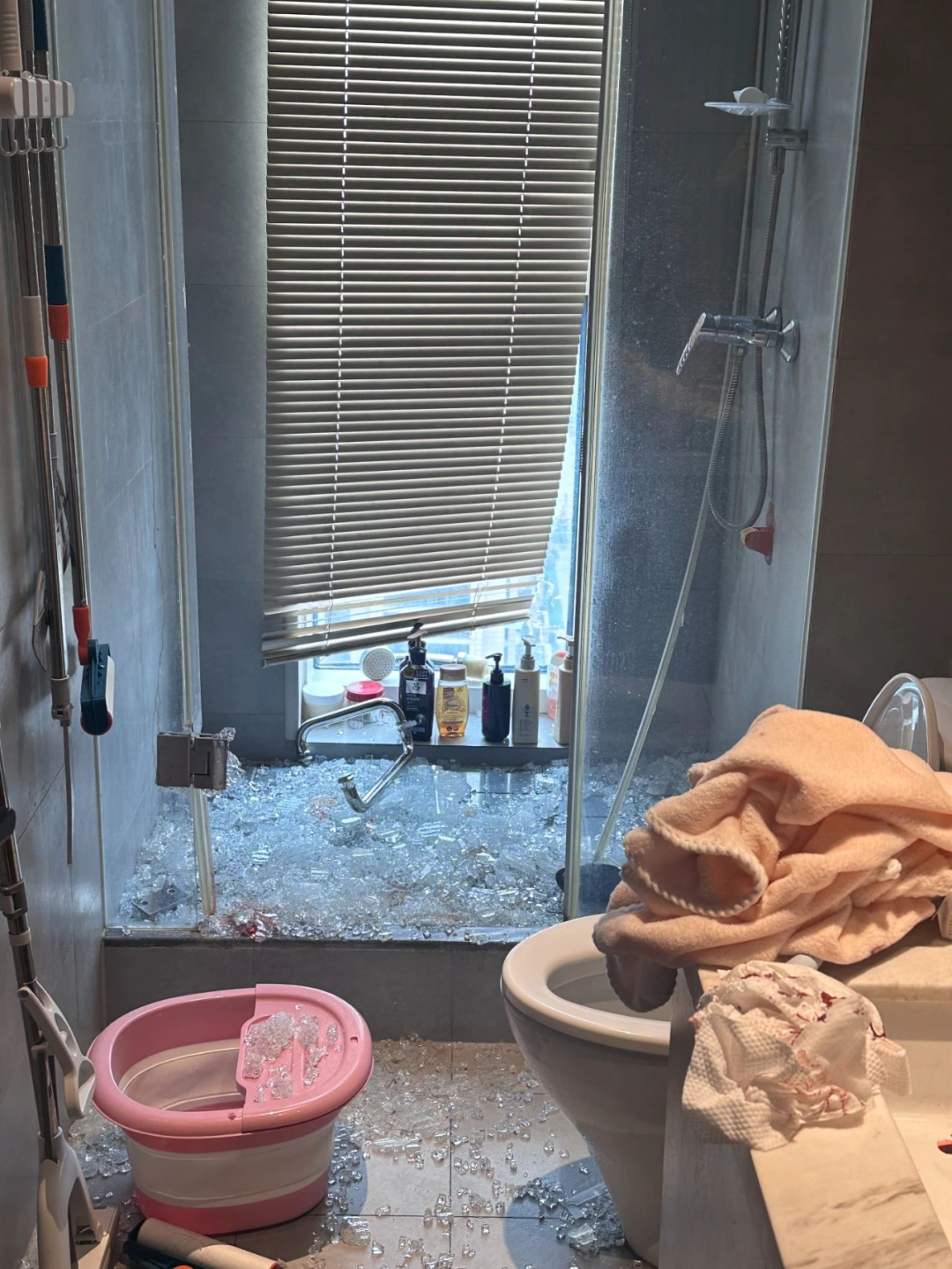 出租屋内浴室玻璃门突然炸裂