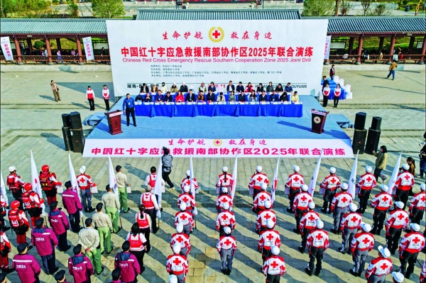 2025年11月,中国红十字应急救援南部协作区联合演练在湘举行,湖南省红十字会主办并担任轮值组长。(资料图片)