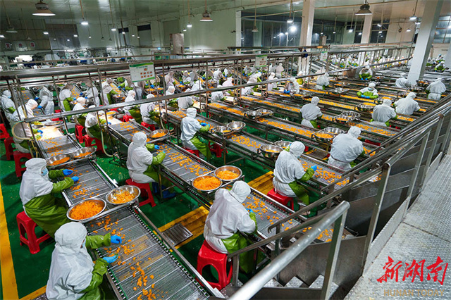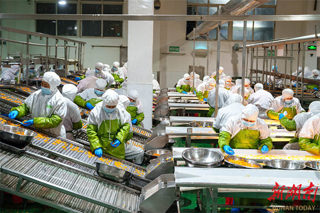 The photo, taken on December 24, shows workers processing canned oranges on the production line at a food company in Lengshuitan District, Yongzhou City. As the year draws to a close, the company is operating at full capacity to produce canned coranges, ensuring the fulfillment of overseas orders. As part of this effort, in recent years, Lengshuitan District has vigorously developed its citrus processing industry and established a complete citrus processing industrial chain, helping farmers increase income. (Photo/Lei Zhongxiang and Jiang Lingzhi)