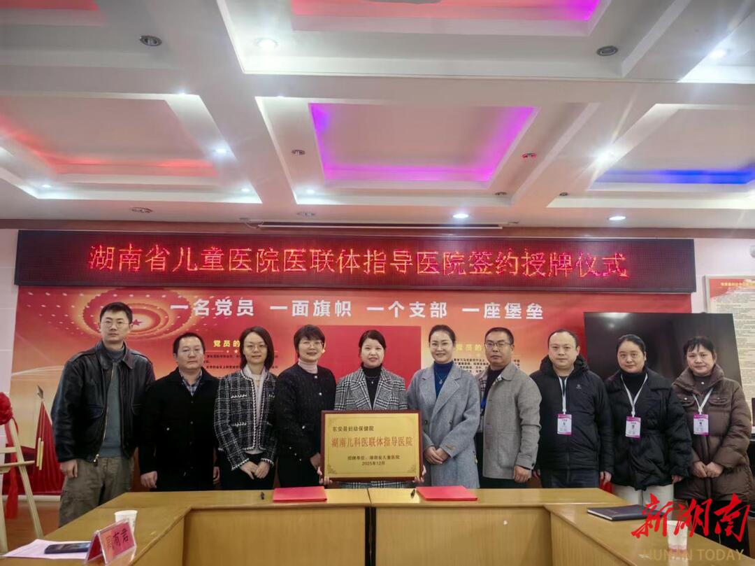 新湖南客户端12月26日讯(通讯员 罗小春、刘梨梨、龙芳)12月24日,东安县妇幼保健院与湖南省儿童医院儿科医联体签约暨授牌仪式在东安县妇幼保健院四楼会议室举行。湖南省儿童医院事业发展部副主任黄晚元及专家一行4人赴现场交流。东安县卫生健康局相关领导,县妇幼保健院班子成员及科室负责人共同参会。