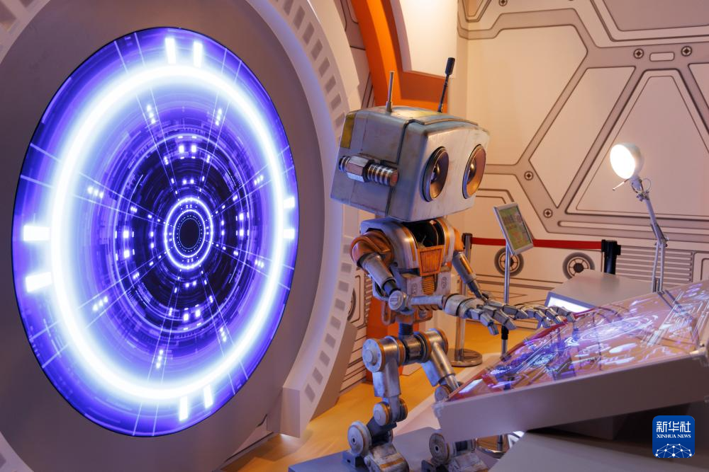 2025年6月28日在中国科学技术馆《Project X:星际友好计划》航天科幻扩展现实(XR)大空间体验展拍摄的人工智能机器人星启8号。