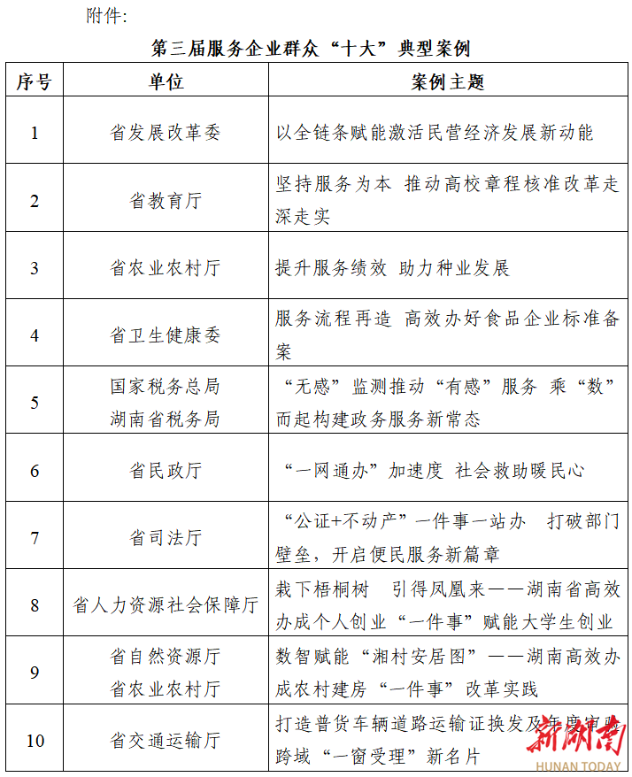 此次入选的“十大”典型案例涵盖资源优化配置、服务流程再造、数智化创新改革、营商环境建设等多个领域,既有针对企业全生命周期服务的精准赋能,也有聚焦群众急难愁盼的高效破解,更有跨部门协同的机制创新,是我省各部门锚定“三高四新”美好蓝图、深化“高效办成一件事”改革、打好优化发展环境持久战的成果集中展示,也诠释了“身在湖南,办事不难”的政务服务新常态。