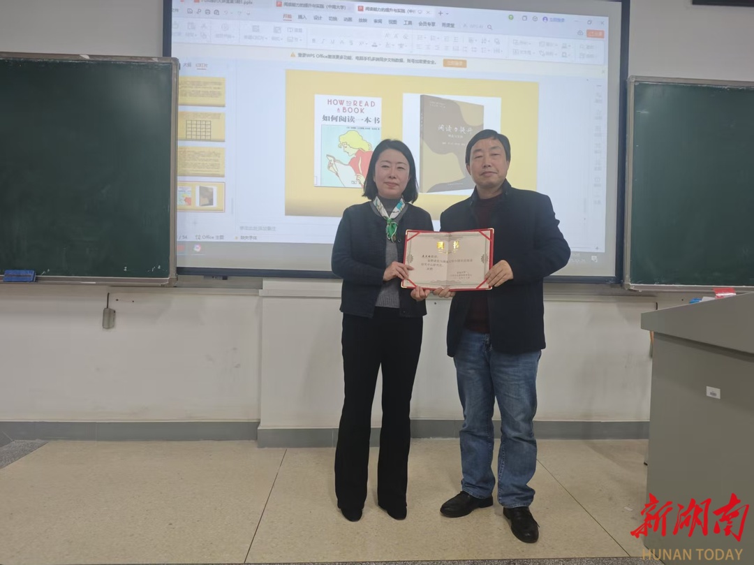 讲座尾声,刘舸向晏杰雄颁发湖南大学中国全民阅读研究中心研究员聘书。晏杰雄总结指出,刘舸教授的讲座带来了一场体系化的阅读科普分享,一是为师生界定了什么是高端阅读,二是提供了阅读训练的方法论,三是有助于养成独立思考能力与判断能力。在场师生互动热烈,深受启发,收获颇丰。