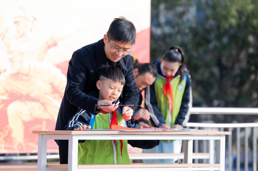 第一篇章 “笔韵·好字——墨香润心 书写华章”,将现场浸润在浓郁醇厚的传统文化氛围里。集体书法展示环节,孩子们握笔凝神、屏气静心,一撇一捺间尽显汉字的方正韵味;古筝雅乐现场奏响,悠扬琴音与淡淡墨香交织相融;亲子书法作品秀更是温情满溢,多组家庭同台挥毫书写“福”字,把对新年的美好期许凝于笔端、落于纸上。