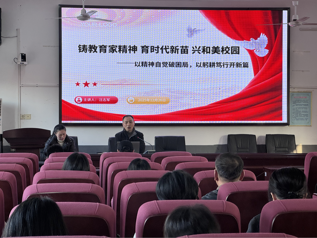 新湖南客户端12月26日讯(通讯员 陈茜凤)为破解部分教师“躺平”困局、提升教学质量,今日,益阳市赫山区曙光小学举办“铸教育家精神 育时代新苗 兴和美校园”专题讲座,学校党支部书记、校长汪志军以弘扬教育家精神为核心,向曙光小学全体教师发出履职尽责、改革创新的号召。
