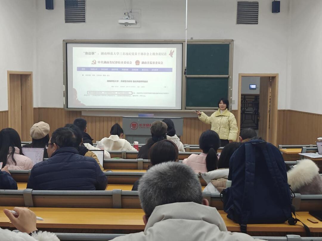 为深入贯彻立德树人根本任务,强化教师廉洁从教意识,筑牢师德师风建设防线,12月23日下午,长沙民政职业技术学院马克思主义学院党总支组织开展“以师者之清,育时代新人”为主题的师德师风专题党课教育,由纪检委员王琼主讲,全体党员教师参会接受思想淬炼与纪律洗礼。