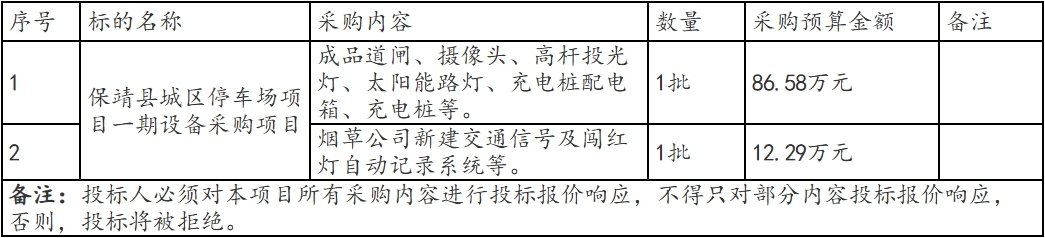 1.项目名称:保靖县城区停车场项目一期设备采购项目