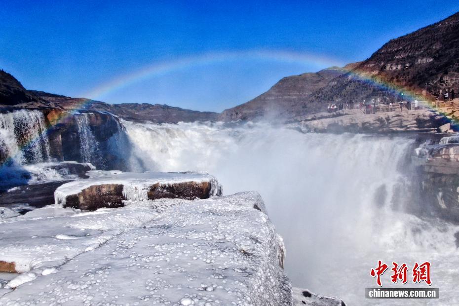 山西吉县:冬日黄河壶口瀑布现冰挂景观