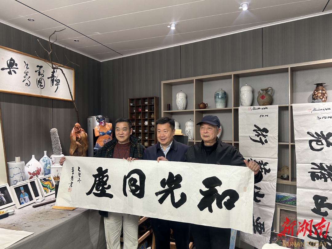 “湖湘风骨”四字,横如斧劈南岳,竖似古藤垂崖,浓处晕作苍岫,淡处散若晓烟,依稀李铎公当年气象;“和光同尘”则点画藏润,转捩间可见使节斡旋之智,提按时犹存赤子朴拙之态。叶之蓁抚掌叹道:“刚健含婀娜,文正公此语,今日得见矣!”马立明颔首:“守铎公之正,化出己意,是真传灯。”