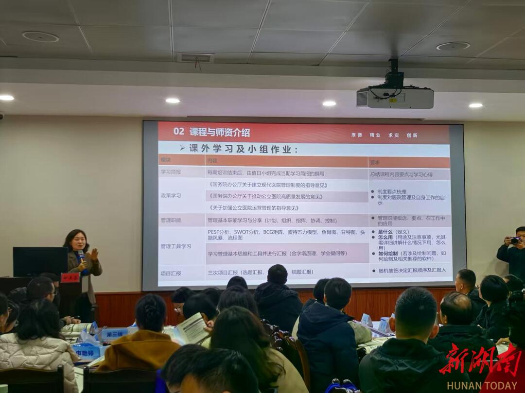 本次培训周期为1年,学员来自市人民医院总院、市中医医院分院、市医疗保障局以及从全市直医疗机构、乡镇卫生院中选拔的中层管理干部和后备业务骨干,培训师资来自四川大学华西医院。课程结合邵东实际精心设计,即以解决医院实际问题为出发点,着眼“十五五”规划及健康中国战略,构建以专题讲授、案例分享、经验交流、标杆参访等多种学习方式相结合的模式,并最终以项目实践模式来完成学业;又涵盖了现代医院管理的宏观战略、运营管理、质量管理、绩效改革、DIP付费等医院综合管理实务,领导力与执行力的领导艺术与职业素养等知识。紧跟当前国家卫生健康委《关于促进和规范“人工智能+医疗卫生”应用发展的实施意见》 在二级以上医院推广应用的时代要求,开设AI+临床诊疗、AI+患者服务、AI+公共卫生等相关课程。还针对医院当前急需解决的门急诊就医流程优化与再造、扩展门诊业务;如何提高外科手术开台率、四级手术率;如何提高邵东肿瘤患者县域就诊率;医院战略及“十五五”规划等课题请华西专家深入指导,完成结题。同时,为提升培训效果,本次培训委托邵东市委党校按照“中青班”要求承办本次培训,晚上由市委党校教师授课,开设党建、党风廉政建设、思想政治、公文写作、领导艺术、现代办公软件、科研论文等课程,将业务与党建融合来全方位赋能管理干部。通过此次培训,进一步建立该市医共体学科建设与人才培养相匹配的制度体系,培育一批兼具医疗专业背景与现代管理思维的懂业务、精运营的复合型管理人才,推动其从传统的“事务型”“经验型”管理者,向“战略型”“职业型”管理者转变,真正成为推动邵东卫生健康事业发展的“行家里手”“中流砥柱”。