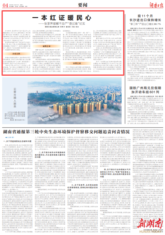 截至2025年12月中旬,全市149件省级协调“登记难”问题化解137件,办结率91.95%;119件信访及巡视巡察类问题化解117件,化解率98.32%;30个“保交房”项目中20个完成首次登记,惠及4374套住房。