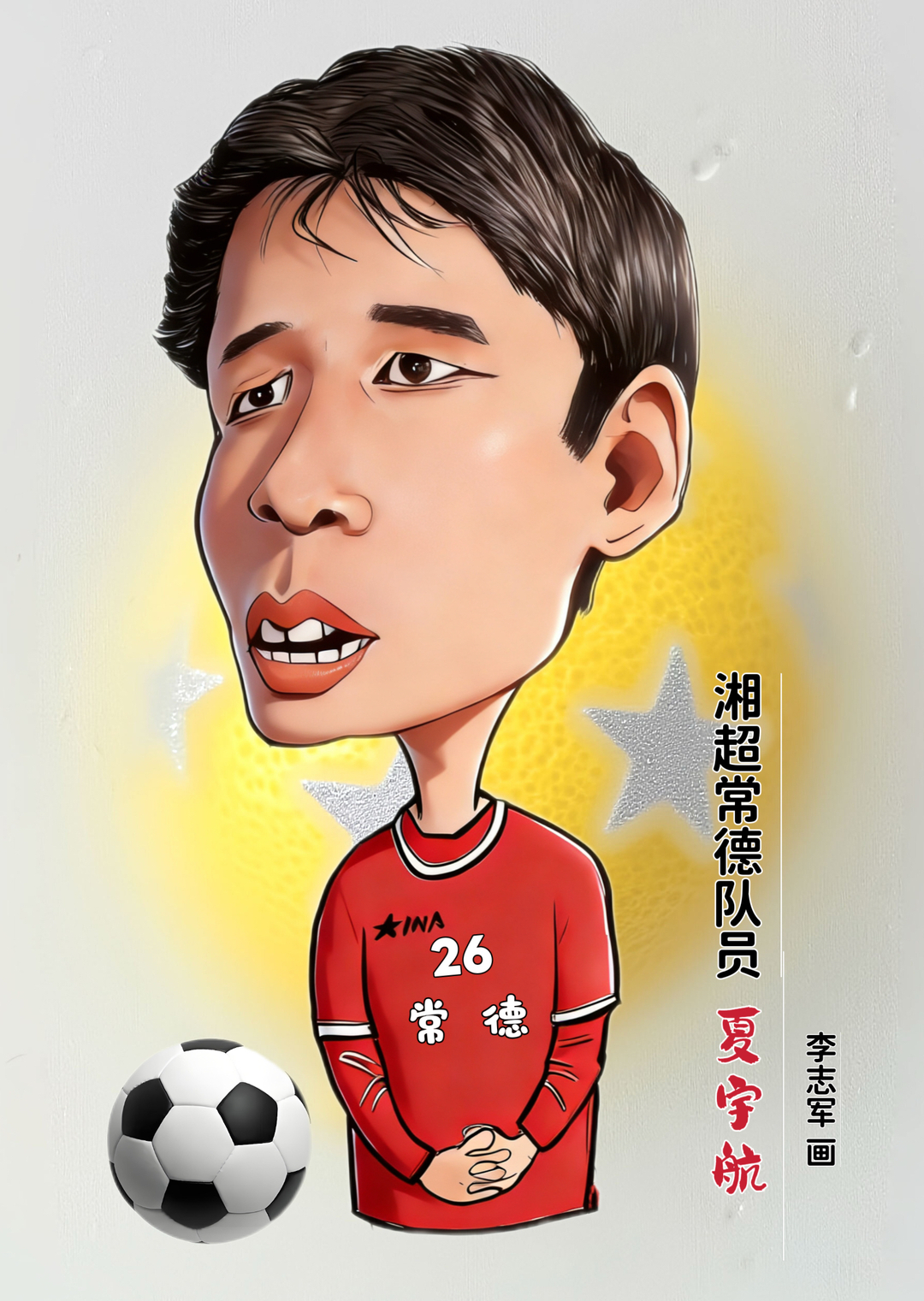 湘超常德队队员夏宇航漫画像。作者|李志军