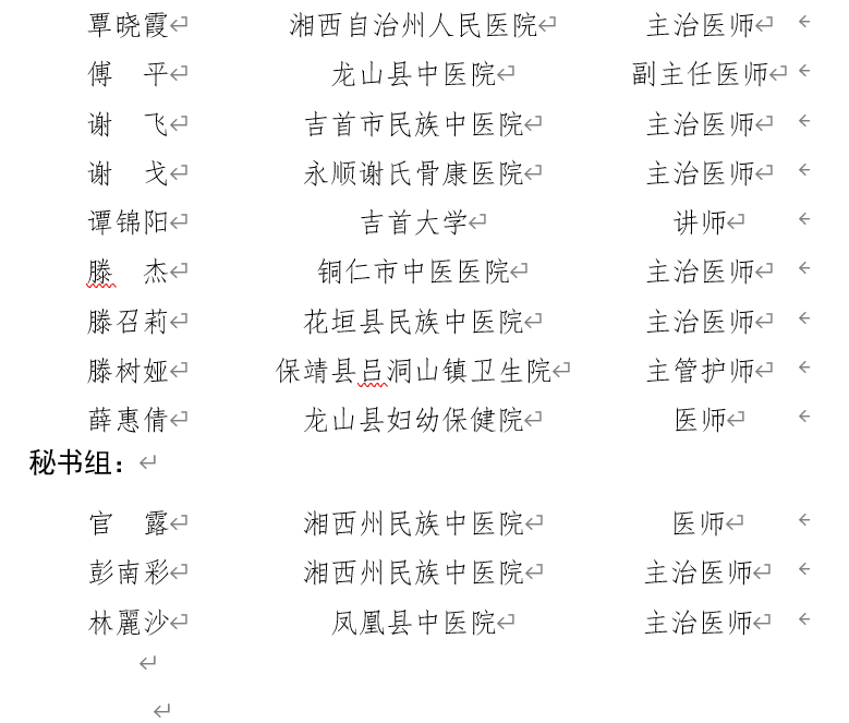 湘西自治州民族中医学会第一届康复专业委员会组成人员名单