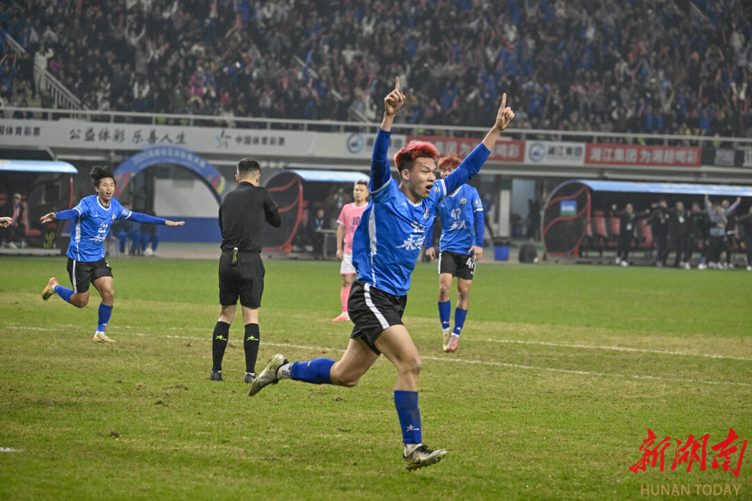 湖南日报·新湖南客户端12月27日讯(全媒体见习记者 刘子涵 胡怡)今晚,湘超总决赛在长沙贺龙体育场举行。上半场两队拼抢激烈,多次威胁射门均未得分,以0:0战平。下半场第58分钟永州队46号谷文杰头球破门,为永州队收获了夺冠的关键一分。最终永州队以1:0战胜常德队,获得了2025年湖南省足球联赛总冠军。