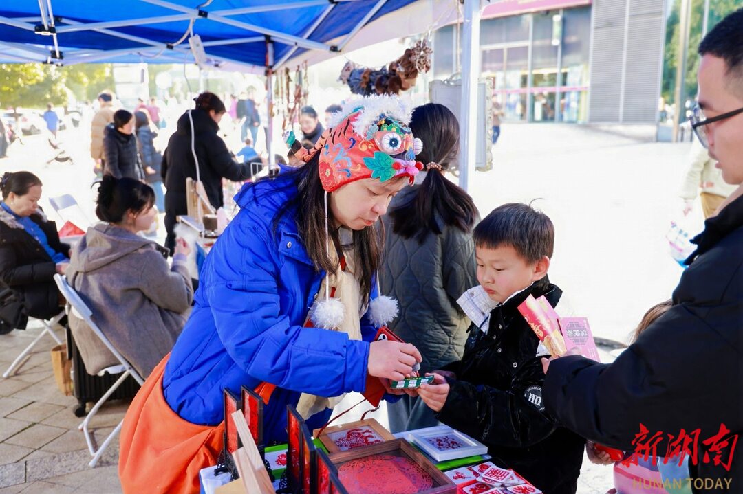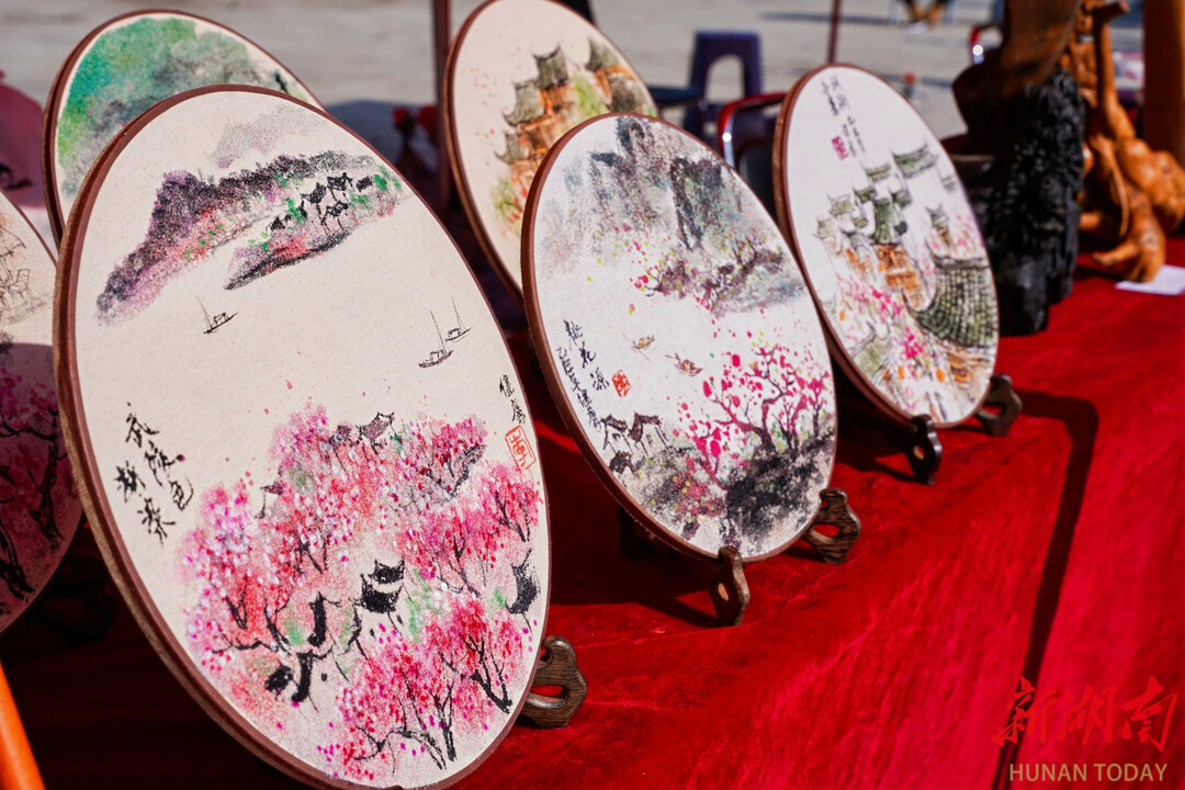 与之相映成趣的,是广场四周的非遗文创市集。市民游客在这里驻足流连,他们轻轻触摸着木雕上细腻的纹路,赞叹麻质画作品的精细……传统工艺正以亲切可感的方式,向人们述说常德的历史与匠心。