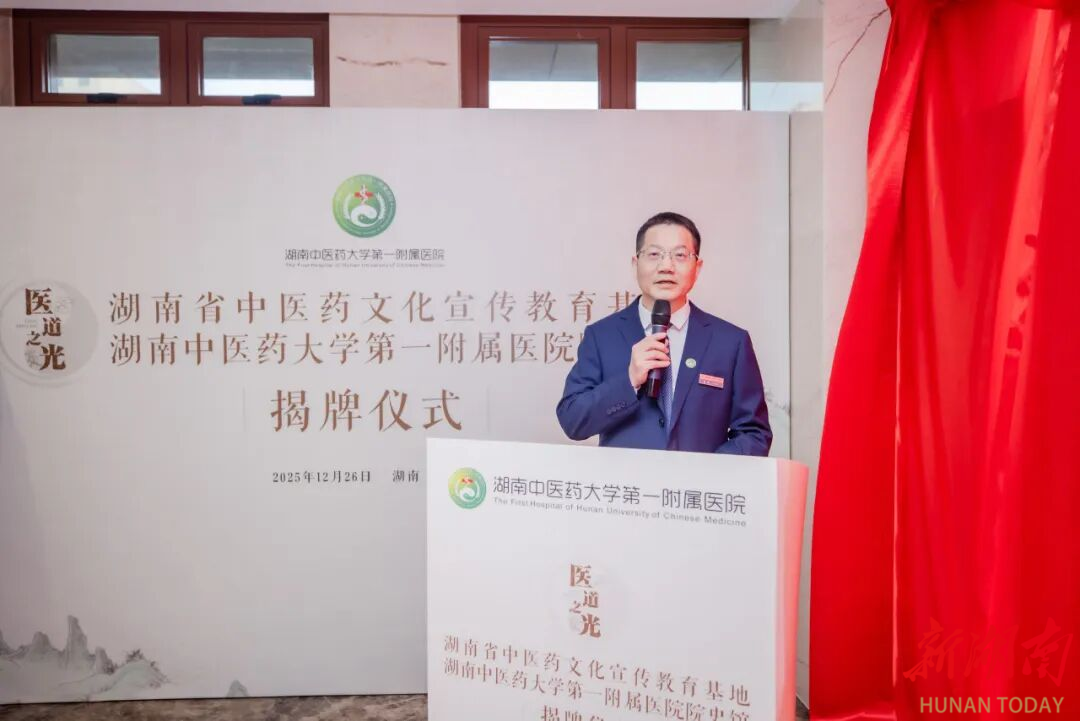 大众卫生报·新湖南客户端12月27日讯(通讯员 王鑫)12月26日,湖南中医药大学第一附属医院举行“医道之光”湖南省中医药文化宣传教育基地暨院史馆揭牌仪式。