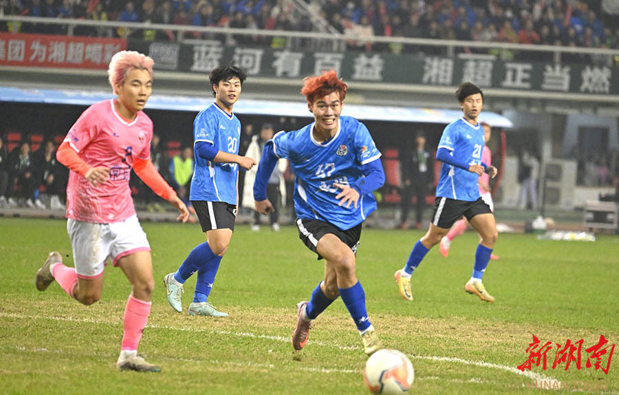 12月27日晚,2025湖南省足球联赛决赛在长沙贺龙体育场打响,永州队与常德队展开终极较量。 湖南日报全媒体记者 郭立亮 摄