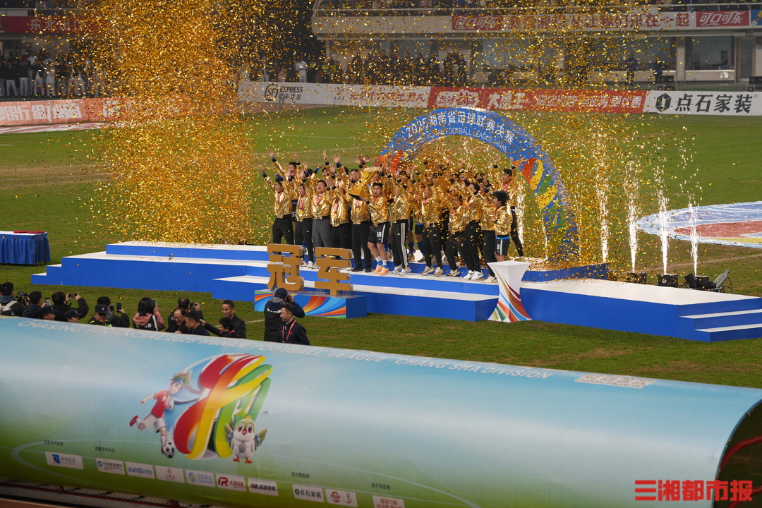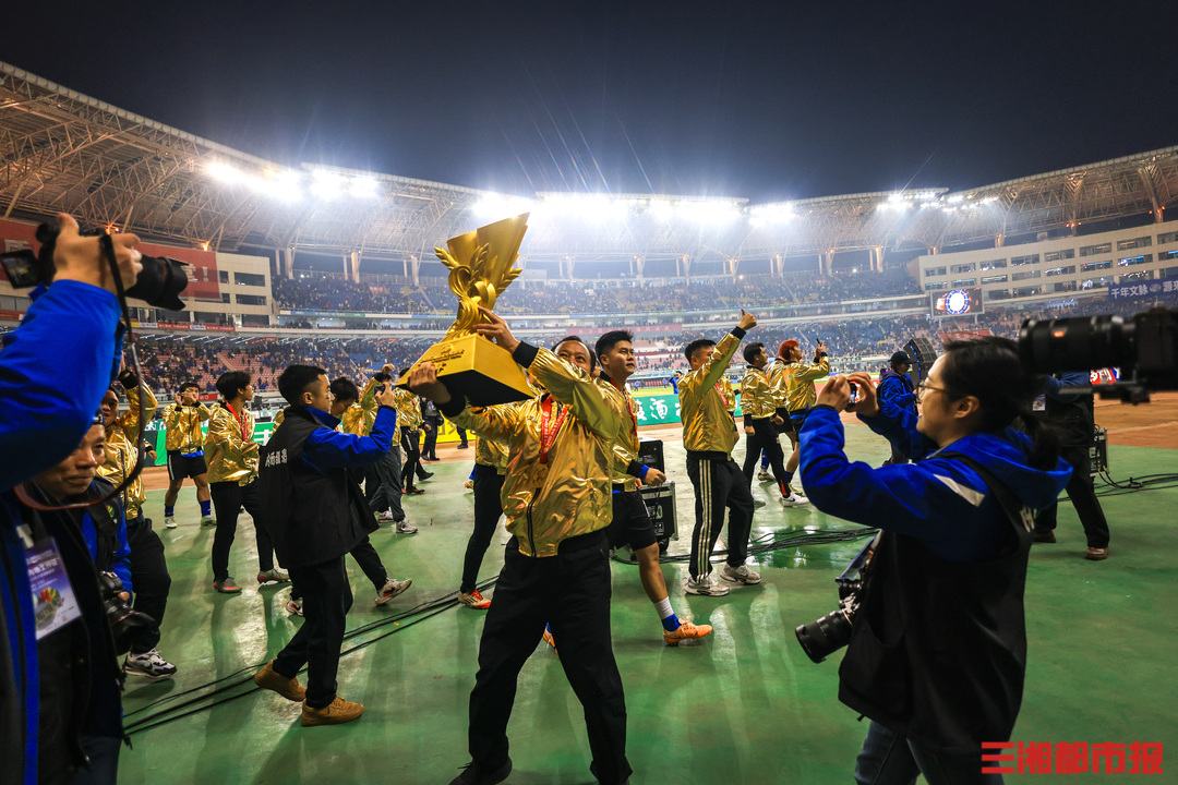 12月27日晚,长沙贺龙体育场内人声鼎沸,在43000名观众的见证下,“黑马”永州队问鼎,常德队获得亚军。这一夜,每个人都是自己的冠军。(全媒体记者 刘丰 王珏 顾荣 叶竹)