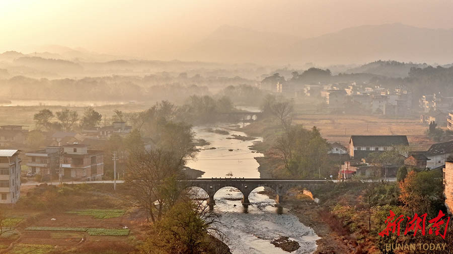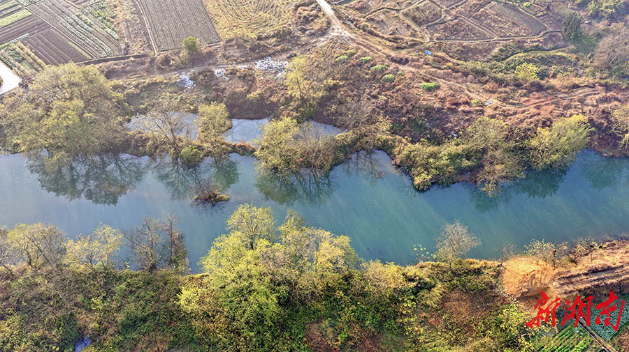 12月27日,常宁市三角塘镇,潭水河两岸彩叶与田园村落相映成趣,构成一幅美丽的乡村画卷。 刘东华 摄(湖南图片库)