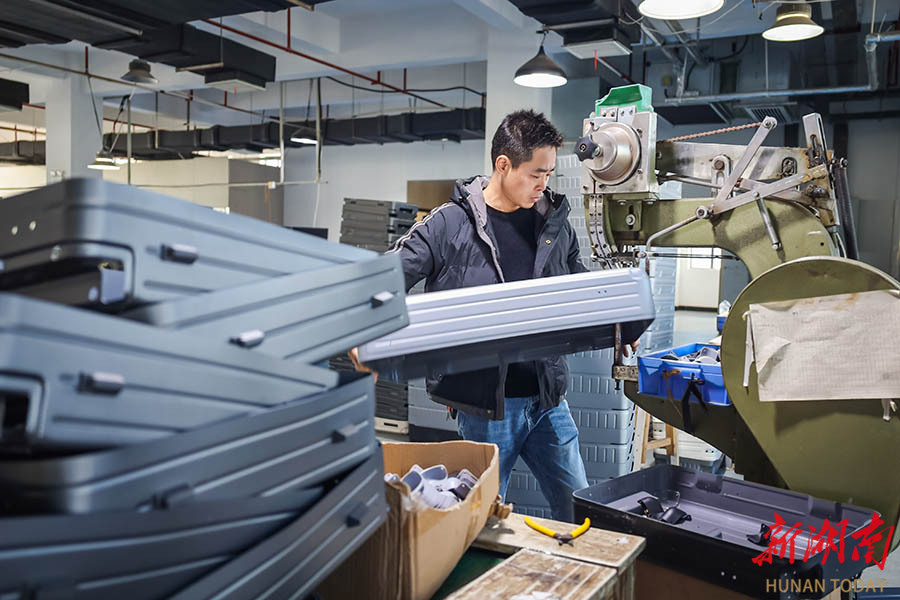 12月27日,蓝山县皮具箱包科技产业园勤工箱包有限公司生产车间,工人在赶制箱包订单。年终岁末,该园区各企业开足马力赶订单、忙生产,全力冲刺年度目标任务。近年来,蓝山县不断壮大皮具箱包玩具产业集群,落地相关产业链企业170余家,总投资达180亿元。 彭华 摄(湖南图片库)
