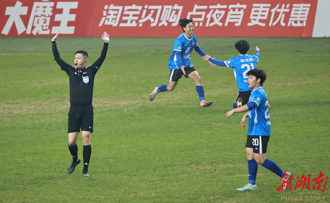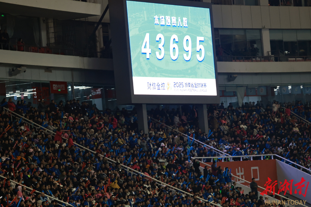 12月27日晚,长沙贺龙体育场43695名观众共同见证了2025年“湘超”冠军的诞生。 当晚,2025湘超决赛常德对阵永州在长沙贺龙体育场举行。上半场两队拼抢激烈,多次威胁射门均未得分,以0:0战平;下半场第58分钟,永州队凭借46号谷文杰的头球破门1:0领先,这也是决赛中唯一一粒进球。最终,永州队以1:0获胜,夺得2025年湖南省足球联赛冠军。