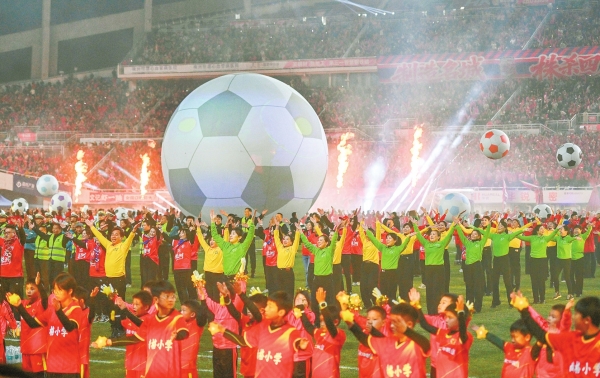 12月21日晚,株洲市体育中心,一场特别的开场秀温暖全场——公安交警、消防应急、环卫保洁、医疗救援等近千名幕后工作人员受邀走上球场,与球员、球迷共同狂欢。