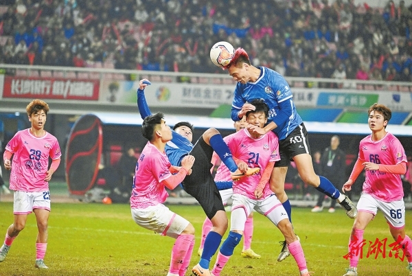 谷文杰头球进球。湖南日报全媒体记者 郭立亮 摄