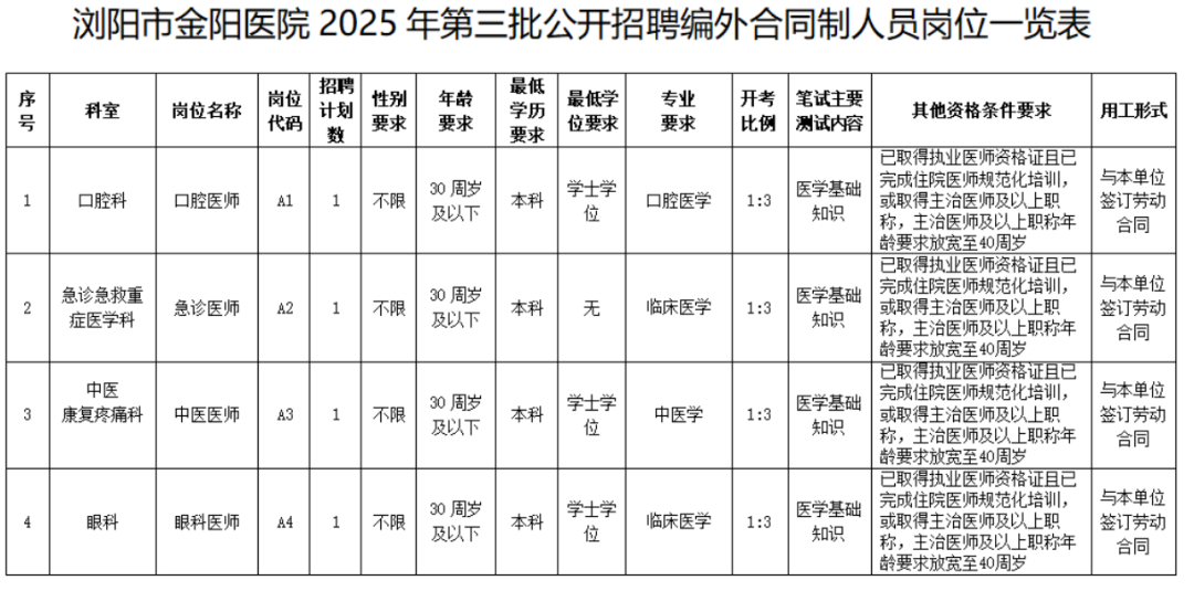 浏阳市人民医院2025年公开招聘编外合同制人员公告