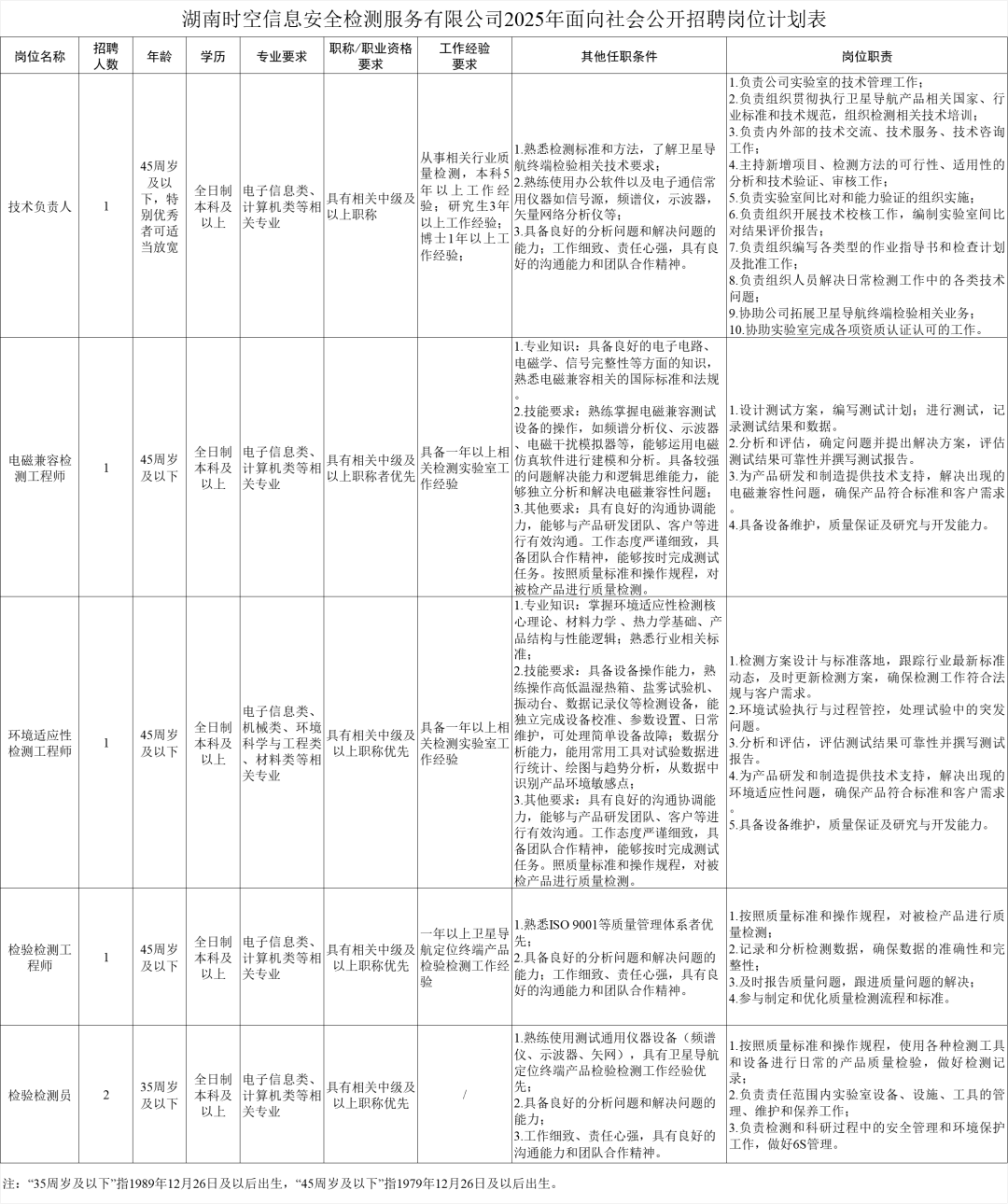 湖南时空信息安全检测服务有限公司2025年面向社会公开招聘公告