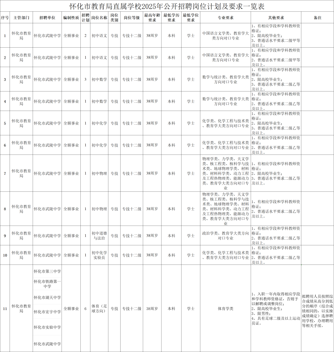 怀化市教育局直属学校2025年公开招聘教职工公告