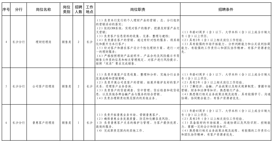 相关报名资料以“姓名-长沙分行-**岗位”命名,请将简历发送至hfcszhaopin@163.com进行简历投递。