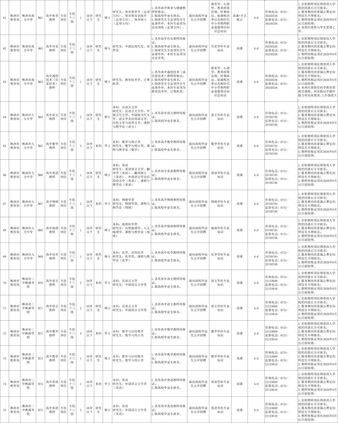 2026年株洲市教育局直属学校面向高校毕业生公开招聘教师公告