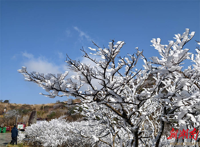 The photo, taken on December 25, shows the picturesque rime scenery of Dawei Mountain National Forest Park in Liuyang City. Affected by a cold wave, the scenic area has seen snowfall since December 24. A blanket of snow now covers the mountain peaks, creating a dreamlike rime landscape. (Photo/Xiong Jian)