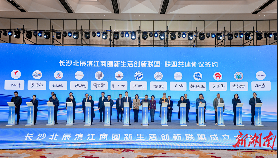 12月28日,长沙北辰滨江商圈新生活创新联盟成立。开福区政府与北辰集团联合发起并携手区域内多家企事业单位,以北辰三角洲为战略支点,串联“三馆一厅”、湖南省博物馆等璀璨文化地标,构建一个“会、展、商、文、体、旅”六位一体、深度融合的滨水都会新典范。