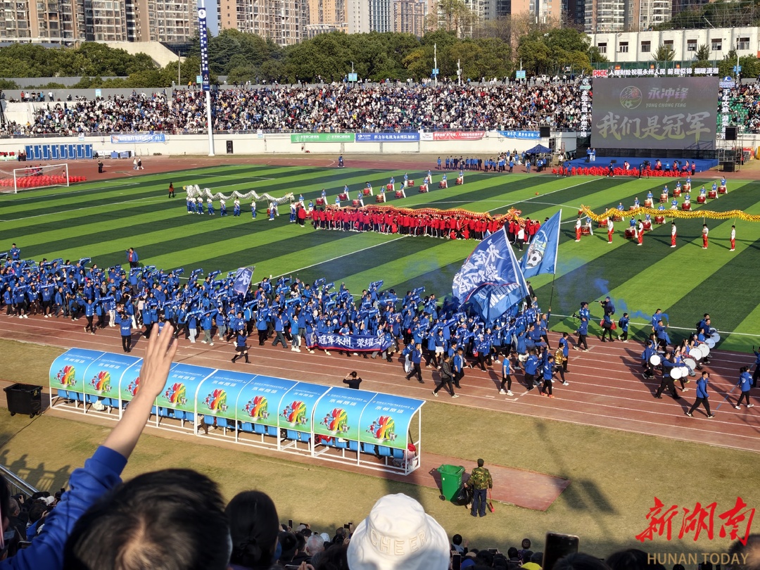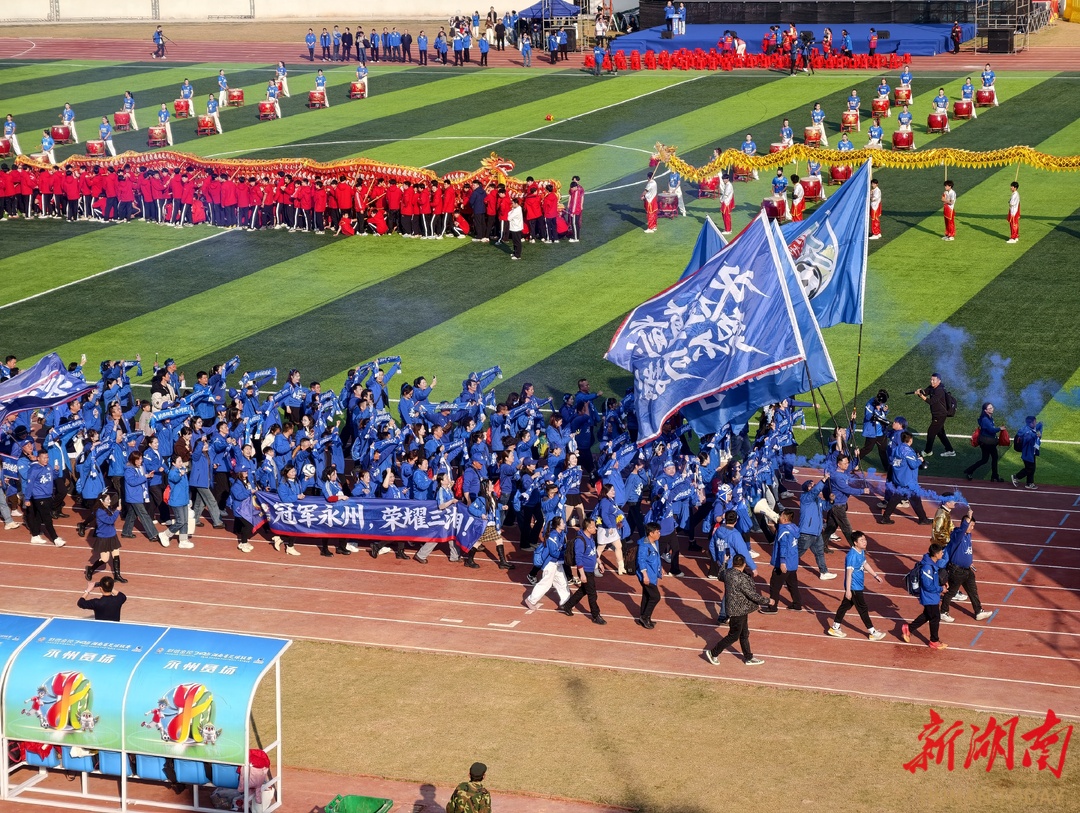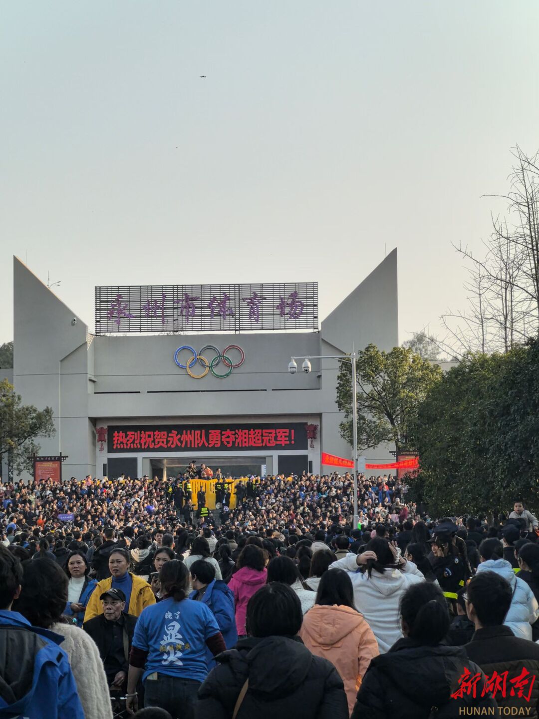 据悉,在12月27日晚的湘超决赛中,永州队凭借顽强的“永冲锋”精神鏖战全场,以1∶0击败常德队,为永州赢得首座湘超冠军奖杯。夺冠消息传来,市民欢欣鼓舞,沿街商户、单位自发布置庆贺标语,与当日举行的冠军凯旋环城巡游活动呼应,共同定格这份属于城市的荣耀与喜悦。