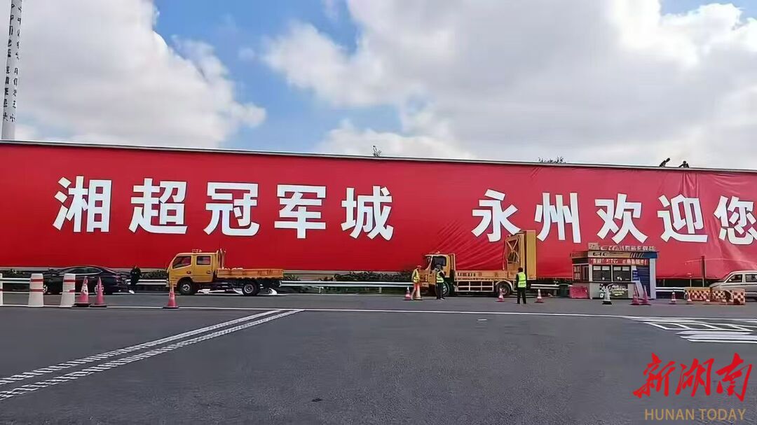 湖南日报·新湖南客户端12月28日讯(记者 黄柳英)12月28日,永州街头洋溢着热烈的欢庆氛围,多处路段悬挂起“湘超冠军城”等庆贺宣传语,以此致敬刚斩获2025湘超联赛冠军的永州队。